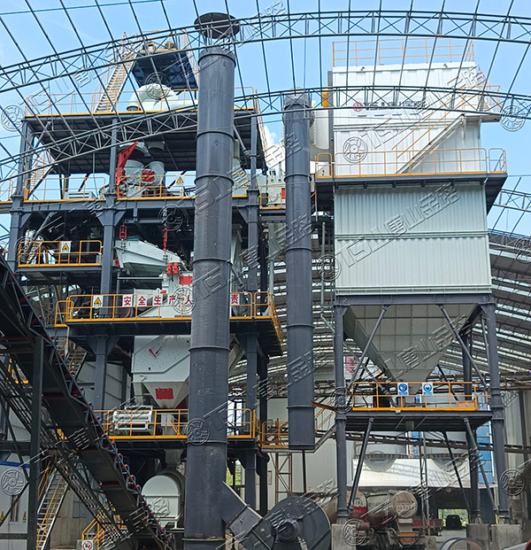 四套制砂樓,時產600噸,設備選型為4臺制砂選粉一體機,8臺空氣篩,8臺無動力選粉機,4臺粗細粉分離機等。