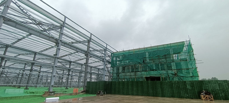 辦公樓主要為研發團隊、市場部、電商中心等辦公使用,建設面積約3000平米,目前已經完成封頂工作,正在進行內部的建筑施工。